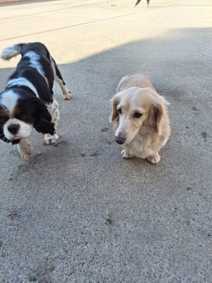 ダックスのマロンちゃんうろうろ動き回ってはります。