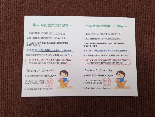 ※1月3日朝9時か夕方5時のみの対応